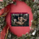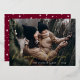 Modern holiday photo card featuring the phrase "Merry and Bright" in a gold foil handwritten script. The gold foil merry and bright holiday card features your horizontal photo with your family name and the year displayed below. The festive card reverses to display a white starburst pattern on a cranberry background.