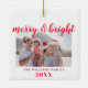 Modern Minimalist Family Photo Merry and Bright Christmas Ornament, Features elegant calligraphy script font Merry & Bright. Personalise your family name and year.