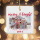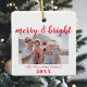 Merry and Bright Photo Christmas Ceramic Ornament