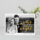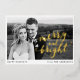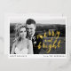 Stylish holiday card featuring your horizontal photo with "Merry and Bright" displayed in gold foil script lettering. Personalise the front of the gold foil holiday card with a custom greeting and your names. The back features a black and white dot pattern.