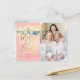 Merry and Bright Pink Gold Ribbon Greeting Photo Holiday Postcard