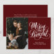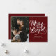 Merry and Bright Red Calligraphy Modern Photo Holiday Card