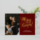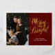 Merry and Bright Red Gold Modern Calligraphy Photo Real Foil Holiday Card. Send Holiday Greetings with photos to your loved ones with this festive and Modern Foil Holiday Card. All the texts are pre-arranged for you to personalise easily and quickly with your own details. Happy Holidays!