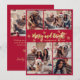 Merry and Bright Red Gold Photo Collage Christmas Holiday Card