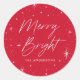 Modern holiday stickers with "Merry and Bright" displayed in a hand-lettered script encircled by a border of white stars against a red background. Personalise the merry and bright stickers by adding your family name below. The stickers work great as envelope seals, to seal favour bags, and more!