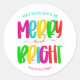 Merry and Bright Round Christmas Stickers. Add these colourful, festive and fun Christmas stickers to any Christmas present or holiday party favour. These holiday stickers have 5 bright colours and a script font and yes you can personalise with a seasonal greeting. Visit our website for more Christmas sticker and Christmas party ideas-->> www.tkmpartyprintables.com