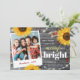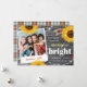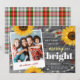 Rustic holiday cards that you can insert your own family photo into make for a truly special greeting to friends and family members... The design on these unique watercolor sunflower Christmas cards depict a beautiful grey vintage wood illuminated with string lights, cheerful sunflowers, and red holly berries with accents of gold and plaid tartan patterns. There are additional template layers of wood colours that can be revealed should you desire a deep burgundy red finish instead, or even an antique white tone. The elegant brush script as well as the other fonts may also be changed. With many creative options, you can make a one-of-a-kind card that everyone will love! Insert your own picture, and be sure to add the year and name down below. The short holiday greeting on the front of these floral rustic Christmas cards reads: "Wishing you a joyous holiday season, and all the best in the New Year!" This, along with the title "may your days be merry and bright" can be personalised to the wording of your choice. Category: country Christmas cards; vintage Christmas cards; and happy holidays Christmas cards. Fall/winter colour theme: yellow, gold, grey, maroon red and green + white.