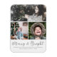 Merry and Bright Script Snow Overlay Photo Collage Magnet