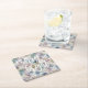 Elegant abstract snowflake pattern with Merry and Bright in chic lettering, these square paper coasters are personalised with your family name, too. Fun to add to your home decor for the holidays or give as a gift.
