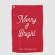 Merry and Bright Typography Script Red Golf Towel