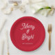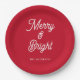 Merry and Bright Typography Script Red Paper Plate