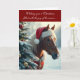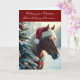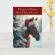 A whimsical nod to the holidays! This festive card features a handsome horse beside a twinkling Christmas tree, bringing together equestrian spirit and seasonal sparkle. Send it to riders, trainers, and animal lovers who know that the best gifts have four hooves and a kind heart.