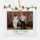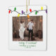 First Christmas Married! Congratulations! Perfect for celebrating your newlywed status in a fun, whimsical way! Cute, Modern yet Rustic Christmas Holiday Photo Square Ornaments featuring adorable little string of colourful Christmas lights in red, green, yellow, and purple, along with modern typography. Add 2 of your favourite photos for the perfect ornament! Please contact us at cedarandstring@gmail.com if you need assistance with the design or matching products.