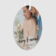 Simple, stylish wedding photo christmas ornament in a modern minimalist design style with an elegant natural script typography in classic black and white, with an informal handwriting style font. The photo and text can easily be personalised with your name and message for a unique one of a kind wedding design following your special day.