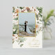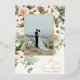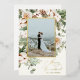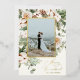 Holiday photo card featuring watercolor winter greenery with a gold accent border and "Merry and Married" for newlyweds. Customise with your family signature and photo. Click "click to customise further" to change the font style, size or colour. Choose between silver, gold and rose gold foil options.