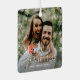 merry and married, retro script newlyweds photo metal tree decoration
