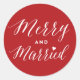 Merry And Married Trendy Script Holiday Wedding Classic Round Sticker