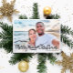 Share your favourite beach vacation picture with this fun and modern beach Christmas photo card featuring a trendy hand-lettered typography overlay that reads "Merry Beachy Christmas" decorated with waves, sun, and surfboard illustrations. Easily personalizable with one of your favourite holiday pictures and your names. The back of the card features a wave pattern in blue and white.