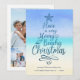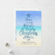 Add a coastal vibe to your Christmas cards with this beach themed holiday card featuring typography with the phrase “Have a very merry beachy Christmas” in the shape of a Christmas tree, with an abstract watercolor beach background. On the back are 3 photos.