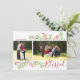 A cheerful holiday card with 2 family photos surrounded by watercolor greenery with red berries. Card as shown features the phrase 'Blessed' but this can be changed to meet your needs. The back of the card features simple red watercolor stripes.