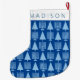 Create your own personalised light blue Menorah and Christmas tree pattern Christmas stocking as a perfect crossover for Chrismukkah and Hanukkah celebrations. The classic Christmas stocking with the iconic symbols of both Christmas and Hanukkah in pale blue is cute for children and pets but adults will love it too. Designed with interfaith celebrations and blended families in mind, this custom holiday stocking features alternating light blue Menorahs with simple modern Christmas trees on a rich dark blue background. A white "cuff" portion at the top has space for your personalised child's name in a medium blue. Design a custom set of light blue on dark blue Chrismukkah stockings for the entire family and let the Chrismukkah holiday celebrations begin.