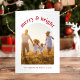 Simple holiday folded card featuring your photo in an arch frame. "merry & bright" is written above in trendy red typography. Add your names and the year in simple red typography. On the inside, add a personalised message and your first names.