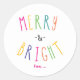 Merry & Bright Christmas Holiday Colourful Stickers. Customise with any text. Matching items are available.
