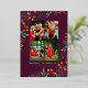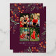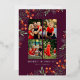 Merry & Bright Christmas Photo Collage Watercolor Floral Foil Holiday Card Foil Stamped Christmas Cards features a photo collage of four of your favourite photos with the foil text overlay "Merry & Bright" in modern calligraphy script typography on a deep pink background accented with watercolor winter greenery and red berries. Personalised your names or custom text below. Perfect for family and friends to celebrate Christmas and the holidays. Designed by ©2025 Evco Studio www.zazzle.com/store/evcostudio