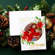 A beautiful red poinsettia floral with holly leaf encircles your cute family photo above Merry Christmas. Bright and cheerful kids photograph gold foil holiday postcards with pretty flowers and leaves around your square picture.