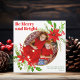 A beautiful red poinsettia floral with holly leaf encircles your cute family photo above Merry Christmas. Bright and cheerful kids photograph holiday magnetic cards with pretty flowers and leaves around your square picture. Festive magnets.
