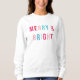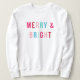 This cheerful Christmas sweatshirt features a bold, modern sans-serif font in bright colours ranging from pink and red to sea foam and sky blue. The bright coloured lettering really stands out against the bright white sweatshirt and is sure to put you in the holiday spirit!