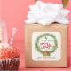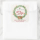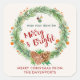 A personalised Christmas sticker with a watercolor wreath. Green pine needles, pine cones and decorative berries make up this festive wreath. Inside the wreath are some decorative ornaments and the words" may your days be Merry & Bright. Written in a trendy red font.