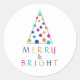 This modern and chic Christmas tree design features a silver triangle with brightly coloured baubles hanging on the tree. Colours of the bulbs include lime green, orange, pink, purple, cyan and blue. This sticker works as an envelope seal and a gift tag. Brightly coloured it is sure to stand out from the crowd of red and green. Give your holidays a modern twist. Matching party essentials and holiday decor available in my store. Have a holiday scape fit for a magazine with this fabulous design.