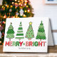 Wish everyone a very Merry Christmas with this cute and colourful Christmas Tree themed card featuring 'Merry & Bright' on the front. You can change all of the inside text, in addition to your family name on the front. The colour palette includes a cheerful mix of reds, pinks, and both dark and light shades of green. This print encapsulates the whimsy and joy of the holiday season. Personalised Name Cute Bold Colourful Merry And Bright Christmas Tree Holiday Card Pink Red Green.