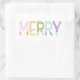 This holiday card design features a modern and playful layout, perfect for spreading seasonal cheer. The "Merry" greeting is displayed in colour block text at the top, complementing the warm, cheerful theme. The card is divided into three photo frames, allowing personalisation with family photos, making it perfect for sharing memories from throughout the year. Accents of soft beige, pastel green, vibrant purple, and blush pink give the design a cosy, festive aesthetic. Customisable text at the bottom offers space for a personalised message from your family.