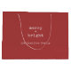 Minimalist merry + bright christmas gift bag. This holiday gift bag features a christmas red background with white typewriter text. All text can be customised and replaced with any text of your choice.