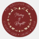 Merry Bright Family Address Deer Gold Wreath Red Classic Round Sticker