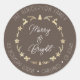 Merry Bright Family Address Reindeer Wreath Gold Classic Round Sticker