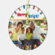 This modern Merry and Bright family photo Christmas ornament featuring a colourful string of Christmas lights of red, green, blue, and orange surrounding your family photo and modern retro typography. Back of the ornament features the colours found in the lights with your family name, names, and year. This is a wonderful keepsake to give to friends or family, or to keep for yourself!