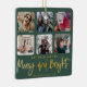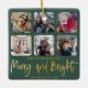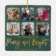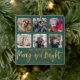 Merry & Bright Faux Gold & Green 6 Photo Christmas Ceramic Ornament