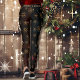 Merry & Bright Festive Black Leggings that will greatly enhance your Christmas outfit. You can update the text or remove it. The pattern are cute golden brown stars in various pattern placed on dark black background with shades of burgundy and green .