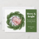 This design features a fir tree wreath with one photo of your choice. This greeting card is the perfect choice to spread joy this Christmas! Personalise it effortlessly.