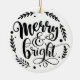 Merry & Bright Hand Lettering Script | B&W Ceramic Tree Decoration