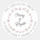 Merry Bright Holiday Address Wreath Deer PinkWhite Classic Round Sticker