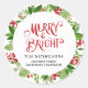 Merry & Bright Holiday Wreath Script Classic Round Sticker