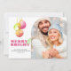 These modern photo Christmas cards bring a fresh twist to holiday greetings, featuring my original watercolor ornaments in vibrant shades of magenta, pink, green, and red. The bold ‘Merry & Bright’ typography pairs beautifully with a minimalist white background, while a customisable arch design lets you showcase your family, couples, or pet photo. Perfect for couples who are married and merry, newly engaged, or looking for simple engagement cards, these pink photo Christmas cards strike the perfect balance of stylish and festive.
