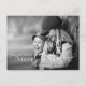 Personalise this trendy and unique holiday design with your photo and text. Design features "Merry & Bright" holiday greeting in cool custom script font with optional dark filter. Complementary silver artisan background on reverse with editable text fields.
