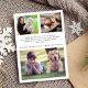 Fun 4 photo Christmas holiday birth announcement. The front features your newborn's picture with "Merry & Bright and up all night!" written in a mix of elegant typography and a stylish gold script. Add your baby's name and birth stats. On the back, add 3 additional photos, a holiday greeting and your names.