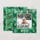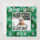 Merry & Bright typography. Green faux metallic with silver glitter pine trees with your favourite photo in the centre. Personalise with your message and name on the reverse side. The perfect holiday greeting card.