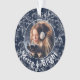 Blue & white vintage pattern background with your favourite photo added & Merry & Bright sentiment with the current year on the back of this lovely keepsake holiday tree ornament. Perfect for you or gift giving. Add to the top of your wrapped gift as a decorative embellishment that serves as part of that special present for that special person in your list.